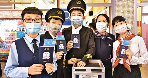 近3年受疫情影響,境外遊不得不擱置,楊校長和教學團隊靈機一觸,設計各式各樣、有趣全校大型活動,包括「眼睛去旅行」,楊校長與學生齊齊穿上空中服務員制服,模擬機場運作,並進行實時直播,讓學生欣賞中國山東、南韓首爾等景點和博物館。