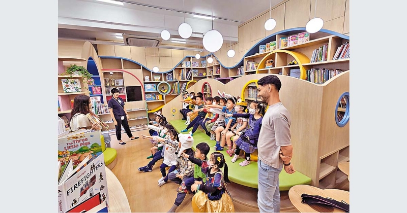 訪問地點是圖書館,館中以「知識森林」為主題,採用彩色及大自然圖案設計,融入木系家具,煥然一新。進入前必須先脫鞋,保持乾淨衞生。