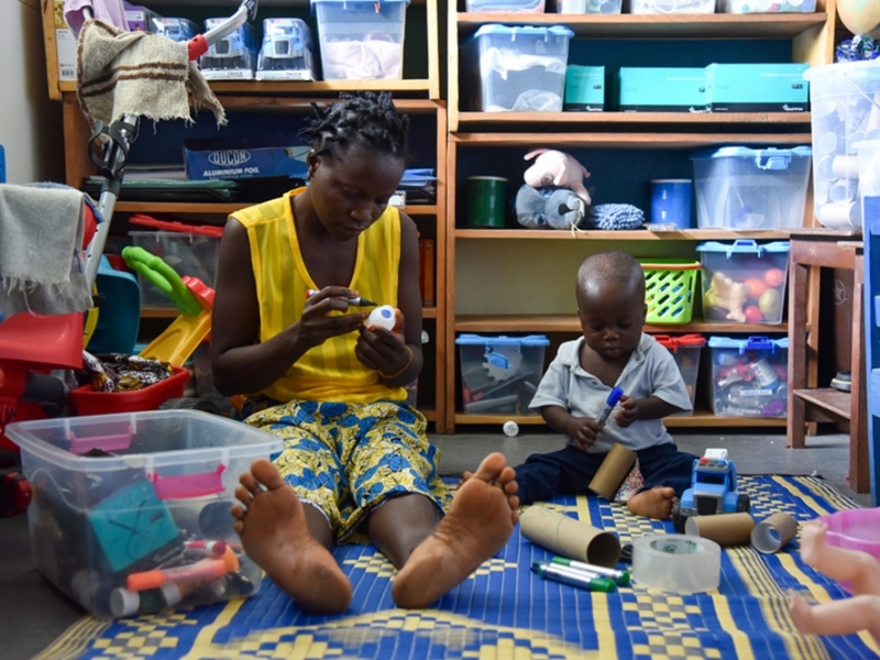 因此,2022年開始,無國界醫生便在凱內馬母嬰醫院內展開遊戲治療,透過玩氣球、玩具、互動遊戲等,讓孩子表達自己的情緒、建立社交能力。此外,組織的心理健康團隊每星期會舉辦5場集體遊戲,令照顧者認識遊戲的意義,並示範如何使用簡易素材製作玩具。
